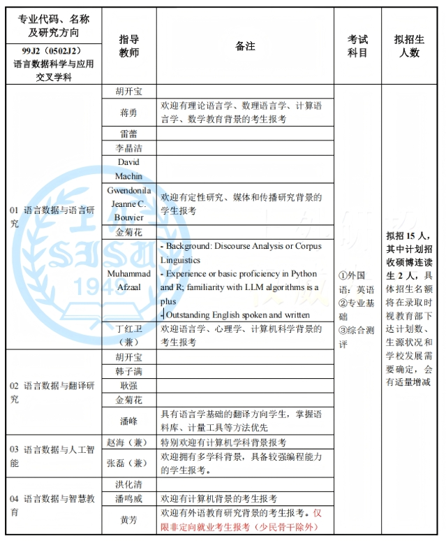 招生专业:99J2(0502J2)语言数据科学与应用交叉学科