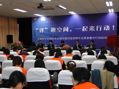 据了解,此次启动的“译”志愿行动还将作为团市委“联合国上海志愿服务发展项目”的专题领域予以扶持,参与服务的志愿者团队将接受来自联合国志愿服务机构和本市相关机构的“联合培育”,通过建立骨干梯次队伍、推出微博“译”助平台、拓展跨省市联动交流等机制,探索推广以志愿服务形式参与社会建设的实践模式,为促进全市公共场所外文使用规范做出积极贡献。相信在接下来的志愿行动中,我校一定会发挥自身优势,全力支持配合本次活动的开展,也相信上外学子能够继续抱着严谨、负责的态度,以专业服务的精神,开展规范监测活动,为上海市国际语言环境建设贡献自己的一份力量。