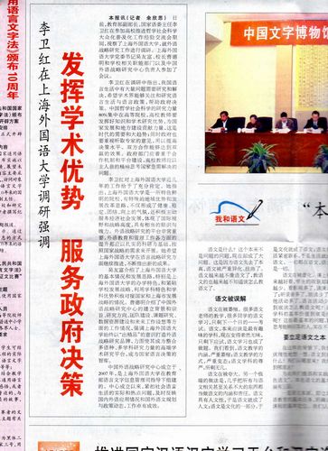 11月3日出版的《语言文字报》头版头条报道,“中国外语战略研究中心成立于2007年,是上海外国语大学在教育部语言文字信息管理司指导下组建的。中心成立以来,紧扣社会语言生活的实际和热点,及时反映国内外语应用情况和国外语文规划与政策动态,工作卓有成效。”