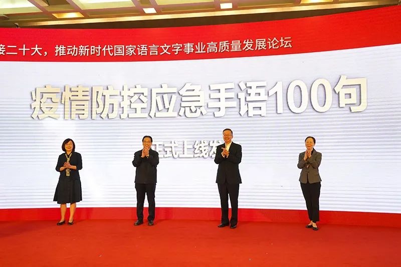 2022年9月,在教育部、国家语委指导下,国家应急语言服务团成员单位中国聋人协会、国家手语和盲文研究中心、国家通用手语数字推广中心牵头研制的《疫情防控应急手语100句》正式上线发布。