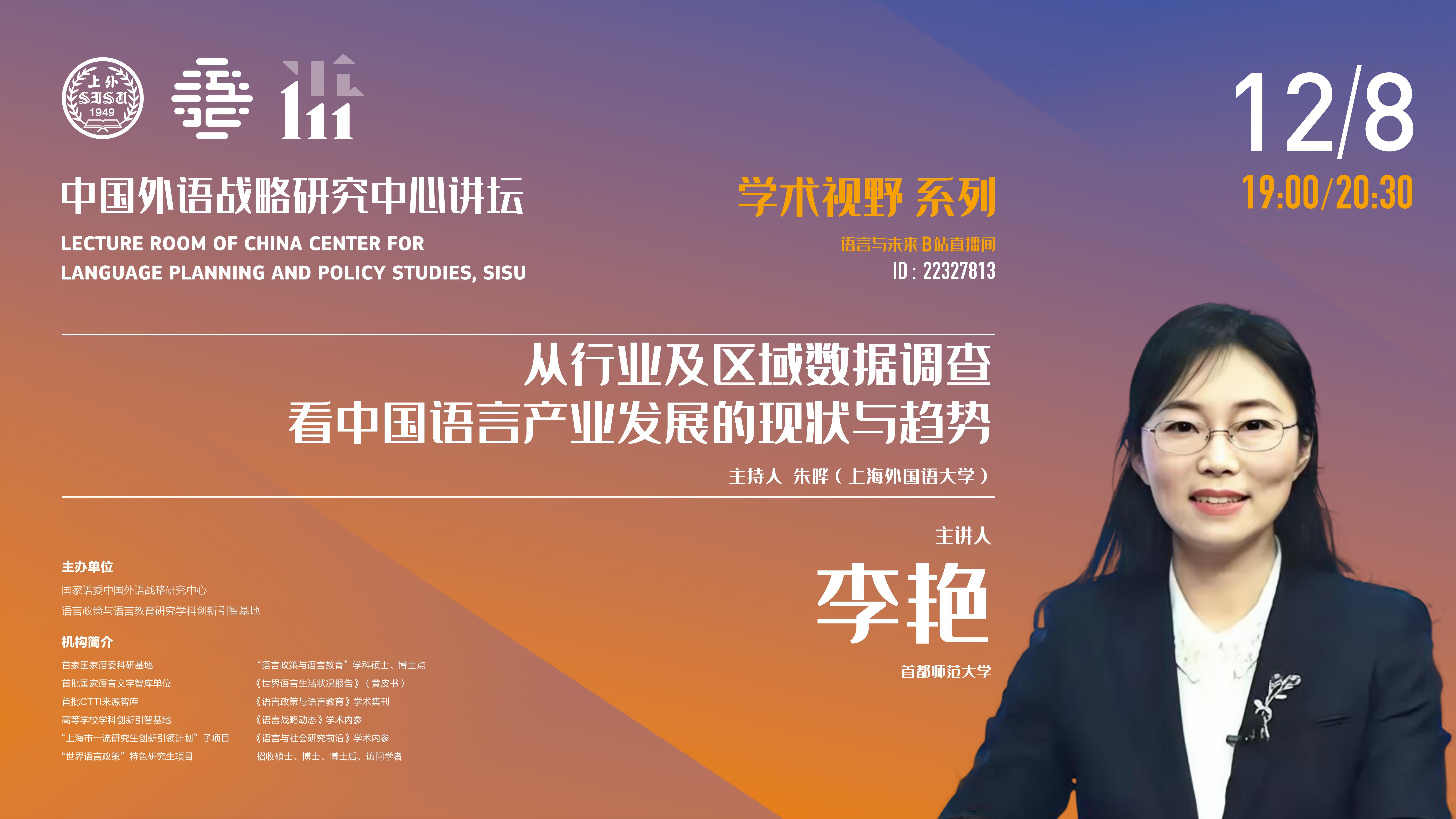 本次讲座将结合部分语言行业及具体区域语言产业的调查情况,从微观、中观、宏观的视角来呈现当前中国语言产业发展的现状与趋势。