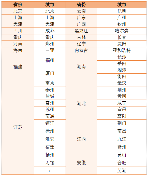 本次考试考点包含但不限于以下城市。报名过程中新增加的考点城市将通过本公号及时发布。请大家多加关注。