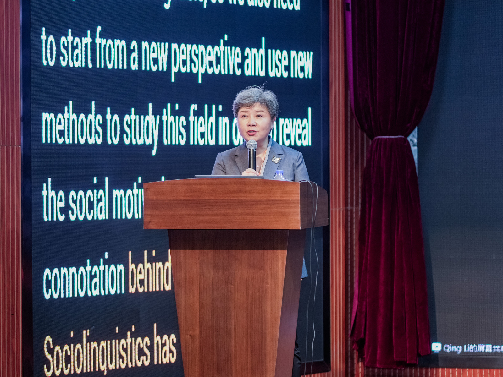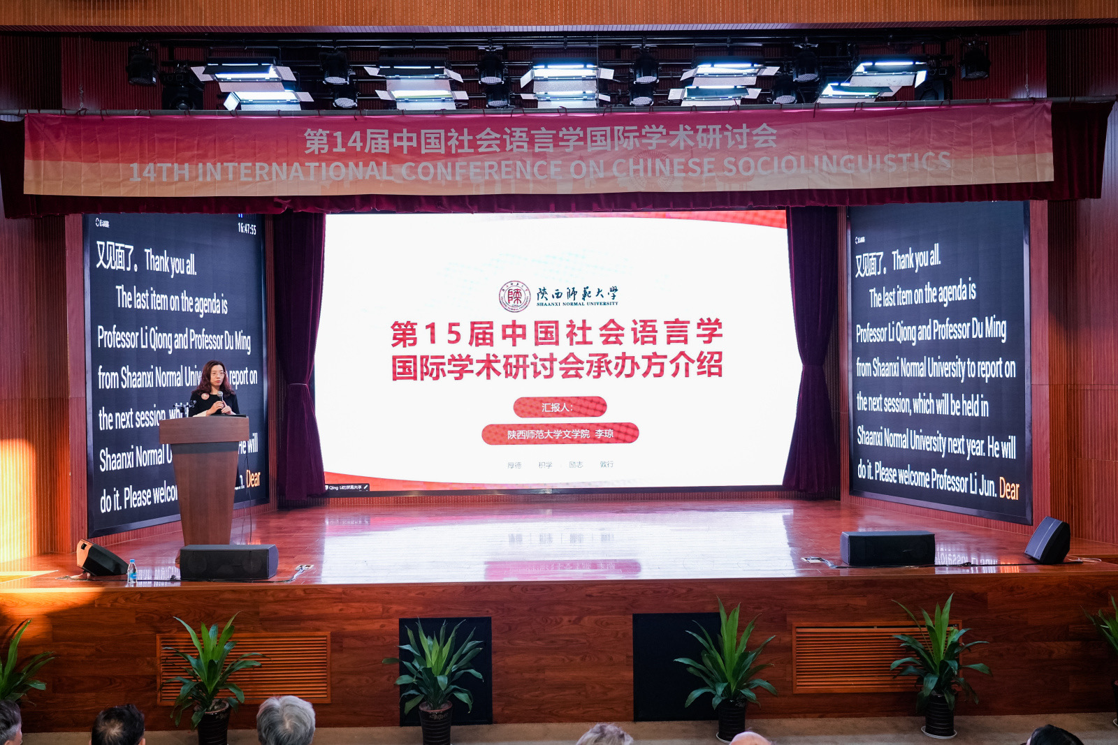 大会闭幕式由中国语言学会社会语言学分会副会长兼秘书长郭龙生研究员主持。多位分论坛主持人汇报了研讨情况,西交利物浦大学人文社科学院的科研副院长门赛尔博士受院长汤蓓蓓教授委托发表了热情洋溢的致辞,西交利物浦大学文学与翻译系主任胡婉博士代表应用语言学系、文学与翻译系对每一位与会者表示最诚挚的感谢,中国语言学会社会语言学分会副会长潘海英教授代表学会致闭幕辞,下一届会议承办方代表、陕西师范大学的李琼教授介绍所在学校的情况,中国语言学会社会语言学分会名誉会长田海龙教授发表了即兴讲话。最后,中国语言学会社会语言学分会会长赵蓉晖教授宣布本次会议闭幕。