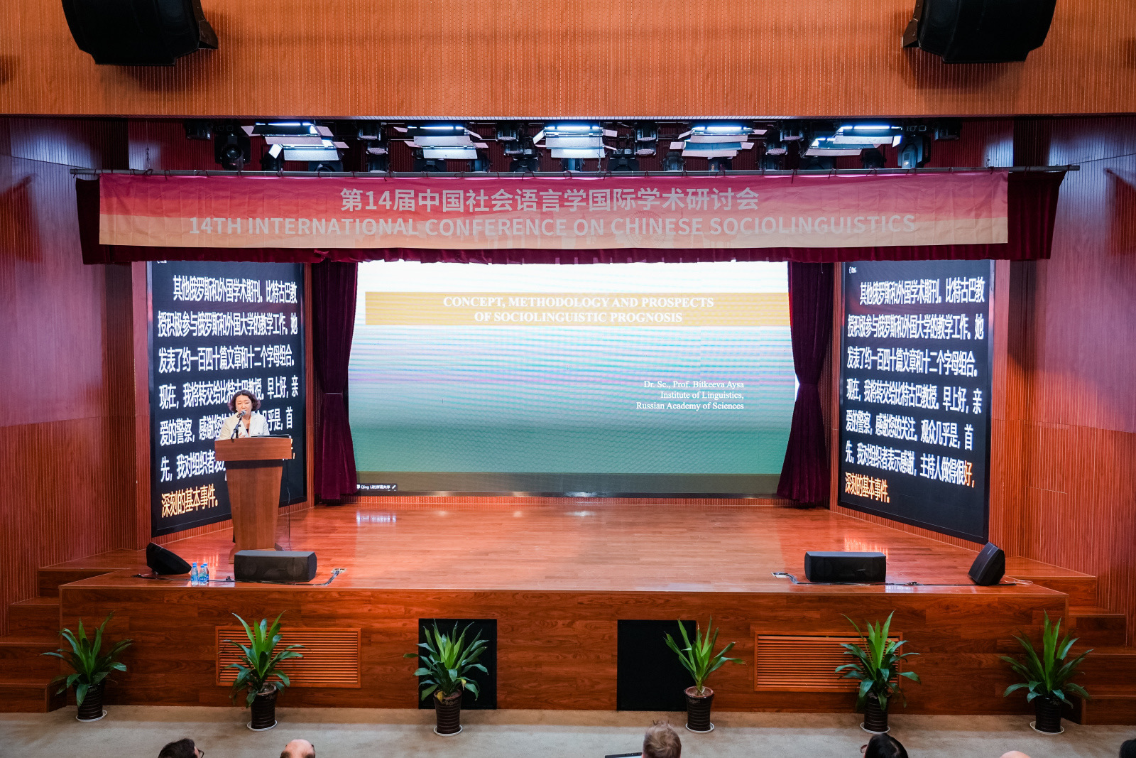 开幕式西交利物浦大学文学与翻译系主任胡婉博士主持。西交利物浦大学校副校长阮周林教授在致辞中热情欢迎与会代表,并介绍了西交利物浦大学的情况,特别是在语言研究与教学方面的特色。中国语言学会社会语言学分会会长赵蓉晖教授回顾了学会及中国社会语言学国际学术研讨会的发展历史,解读了本次会议的主题并对未来研究前景进行展望。中国语言学会会长张伯江研究员在书面讲话中充分肯定了社会语言学分会的工作,指出要充分认识社会语言学的价值,进一步加强基础理论研究,关注现实问题,推动跨学科合作,培养高素质人才,并通过国际学术对话,不断提升我国社会语言学研究的国际影响力,提升社会语言学服务国家建设、服务人类文明进步的能力和贡献度。来自俄罗斯联邦的比特克耶娃研究员分别宣读了俄罗斯科学院语言学研究所、俄罗斯社会语言学会对本次大会的贺信。