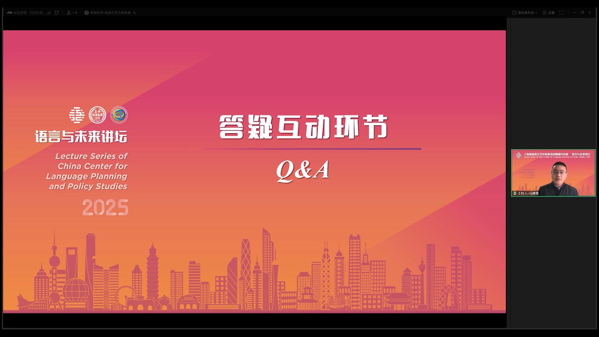 在讲座的互动环节,在线观众围绕着如何解决区域国别人才培养的难点、如何应对人工智能的挑战、如何开展高质量的区域国别研究等话题进行了提问。本次讲座深入剖析了区域国别人才培养的理论框架和实践路径,为高校和研究机构培养服务国家战略需求的区域国别人才提供了重要参考,彰显了区域国别研究对于中国参与全球治理和构建人类命运共同体的战略支撑作用。